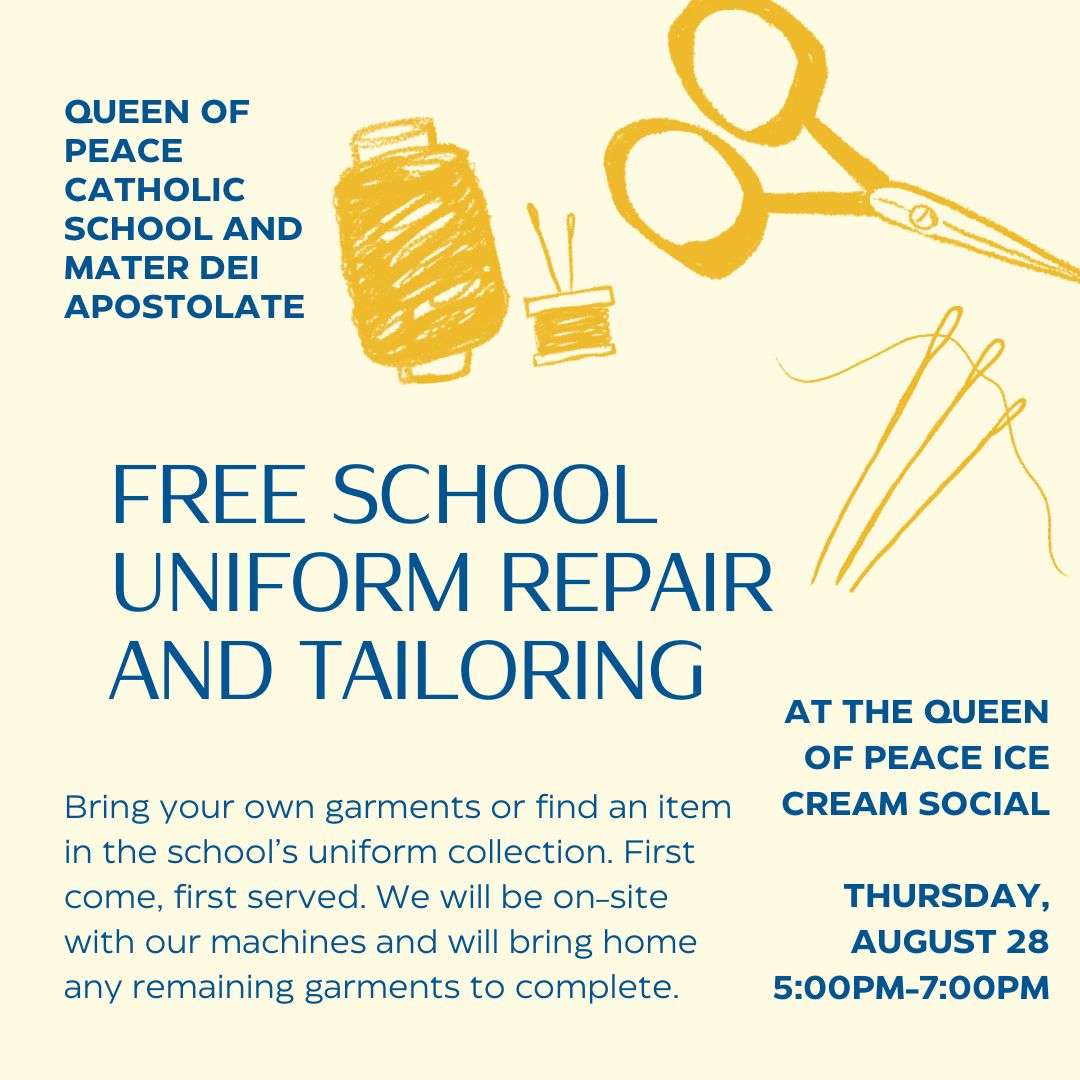 If you have any new or gently used uniform items you would like to donate, please drop them off in the parish gathering space anytime next week (7/26 - 8/2). There will be collection boxes to place the items in.